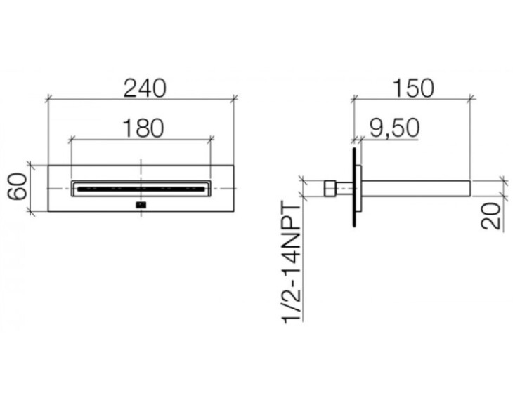 Излив, Dornbracht, CL.1, WATER SHEET, каскадный, тип установки-настенный, вынос излива, мм-150, стандарт подводки-1/2", крышка,мм-240*60, монтаж штепсельного разъема, цвет-платина матовая Излив, Dornbracht, CL.1, WATER SHEET, цвет-платина матовая