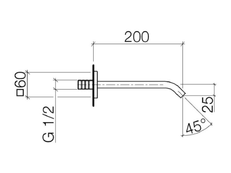 Излив, Dornbracht, Imo, тип установки-настенный, вынос излива, мм-200, стандарт подводки-1/2", прямоугольная нормальная струя, цвет-хром Излив, Dornbracht, Imo, цвет-хром