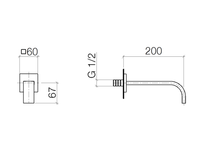 Излив, Dornbracht, MEM, тип установки-настенный, вынос излива, мм-200, стандарт подводки-1/2", цвет-Dark Platinum matt, для раковины, неподвижный, прямоугольная обогащенная воздухом струя, розетка,мм-60*60 Излив, Dornbracht, MEM, цвет-Dark Platinum matt