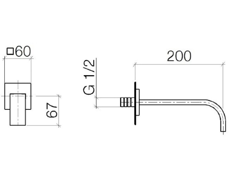 Излив, Dornbracht, MEM, для умывальника, тип установки-настенный, вынос излива, мм-200, стандарт подводки-1/2", излив-неподвижный, прямоугольная обогащенная воздухом струя, розетка,мм-60*60, цвет-платина матовая Излив, Dornbracht, MEM, цвет-платина матовая