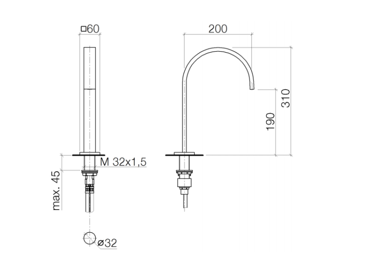 Излив, Dornbracht, MEM, вынос излива, мм-200, стандарт подводки-1/2", цвет-платина матовая, высота излива,мм-310, для умывальника вертикальный со сливным гарнитуром, излив-неподвижный, прямоугольная обогащенная воздухом струя, розетка,мм-60*60 Излив, Dornbracht, MEM, цвет-платина матовая