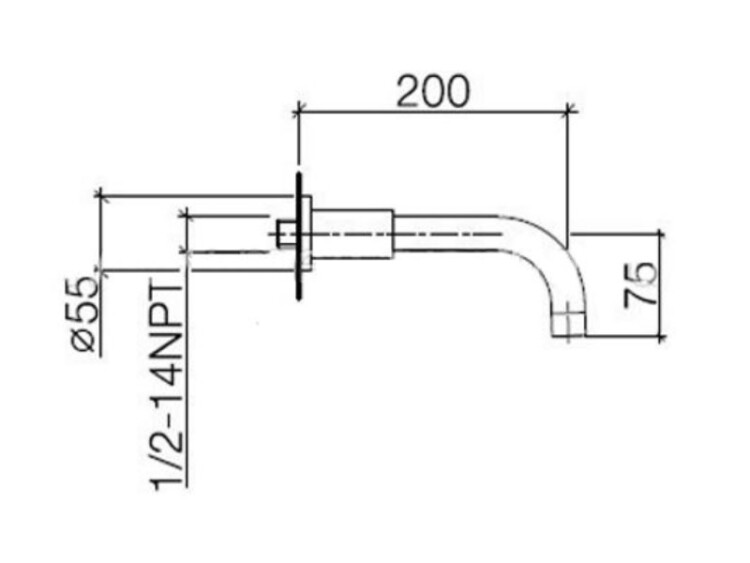 Излив, Dornbracht, Tara, для ванны, тип установки-настенный, вынос излива, мм-200, стандарт подводки-1/2", круглая нормальная струя, диаметр розетки,мм-55, диаметр сверлёного отверстия,мм-37, цвет-черный матовый Излив, Dornbracht, Tara, цвет-черный матовый