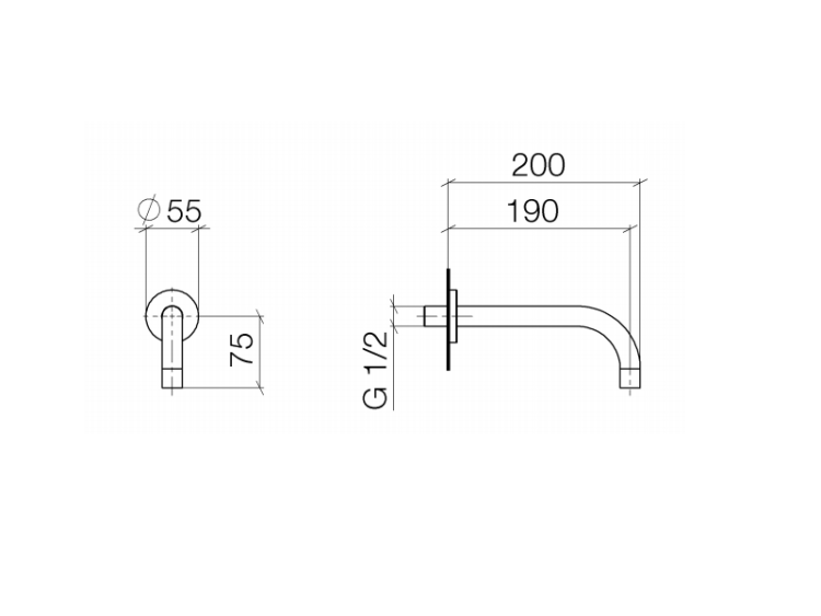 Излив, Dornbracht, Tara, для раковины, тип установки-настенный, вынос излива, мм-190, стандарт подводки-1/2", цвет-хром Излив, Dornbracht, Tara, цвет-хром