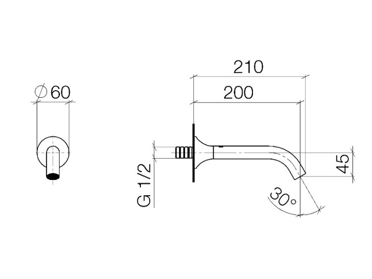 Излив, Dornbracht, Vaia, для ванны, тип установки-настенный, вынос излива, мм-200, стандарт подводки-1/2", цвет-платина матовая Излив, Dornbracht, Vaia, цвет-платина матовая