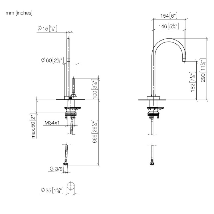 Кран для холодной воды, Dornbracht, Tara, тип открывания воды-однорычажный, тип регулирования воды-керамический картридж, монтаж-на раковину/столешницу, отверстия для монтажа-1, высота, мм-290, вынос излива, мм-146, тип излива-поворотный, донный клапан-отсутствует, тип подводки-гибкая, стандарт подвода воды-3/8", цвет-шампань (золото 22кт) Кран для холодной воды, Dornbracht, Tara, цвет-шампань (золото 22кт)