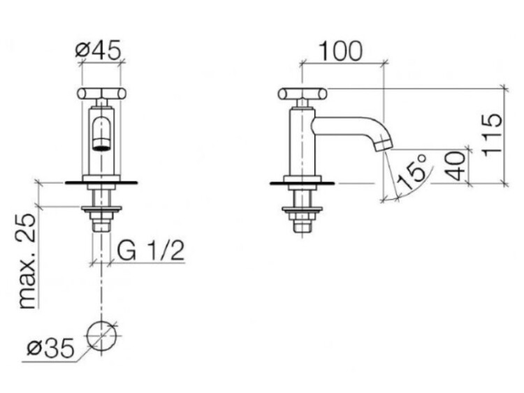 Кран, Dornbracht, Tara, для холодной воды, тип открывания воды-одновентильный, отверстия для монтажа-1, высота, мм-115, вынос излива, мм-100, тип излива-неподвижный, стандарт подвода воды-1/2", цвет-платина матовая Кран, Dornbracht, Tara, цвет-платина матовая