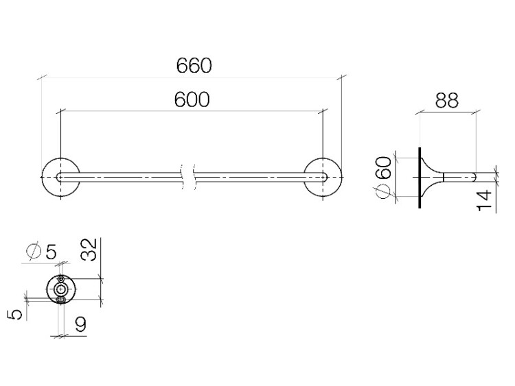 Полотенцедержатель, Dornbracht, Vaia, одинарный, ширина, мм-660, глубина, мм-88, высота, мм-60, тип установки-настенный, цвет-платина матовая Полотенцедержатель, Dornbracht, Vaia, шгв 660*88*60, цвет-платина матовая