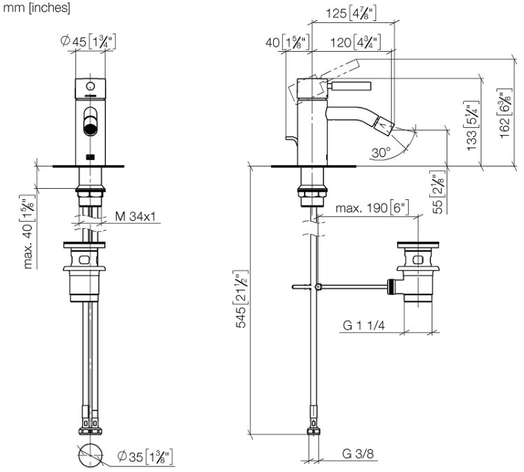 Смеситель для биде, Dornbracht, Meta, тип открывания воды-однорычажный, тип регулирования воды-керамический картридж, отверстия для монтажа-1, высота, мм-133, вынос излива, мм-125, донный клапан-есть, тип подводки-гибкая, стандарт подвода воды-3/8", цвет-черный матовый Смеситель для биде, Dornbracht, Meta, цвет-черный матовый