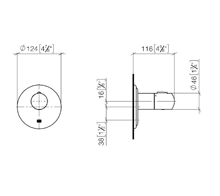 Смеситель для душа, Dornbracht, Madison, на 1 потребитель, тип открывания воды-вентильный, накладная панель,мм-Ø 124, ручка со шкалой и стопором на 38°C, тип регулирования воды-термостатический картридж, монтаж-настенный встраиваемый, отверстия для монтажа-1, внутренняя часть-необходимо заказать, цвет-хром Смеситель для душа, Dornbracht, Madison, на 1 потребитель, цвет-хром