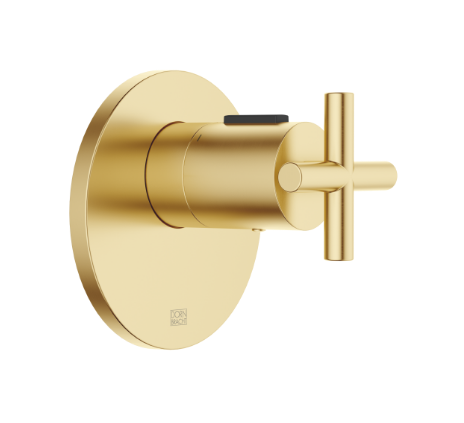 Смеситель для душа, Dornbracht, Tara, на 2/3 потребителя, тип открывания воды-вентильный, тип регулирования воды-термостатический картридж, монтаж-настенный встраиваемый, отверстия для монтажа-1, внутренняя часть-необходимо заказать, вентили-необходимо заказать, без регулирования расхода 3/4“, ручка со шкалой и стопором на 38°C, цвет-латунь сатинированная (золото 23кт) Смеситель для душа, Dornbracht, Tara, на 2/3 потребителя, цвет-латунь сатинированная (золото 23кт)