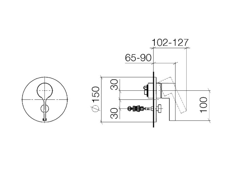 Смеситель для душа, Dornbracht, Vaia, тип открывания воды-однорычажный, тип установки-встраиваемый, внутренняя часть-необходимо заказать, с переключателем, автоматическое переключение, накладная панель диаметр,мм-150, цвет-Dark Platinum matt Смеситель для душа, Dornbracht, Vaia, цвет-Dark Platinum matt