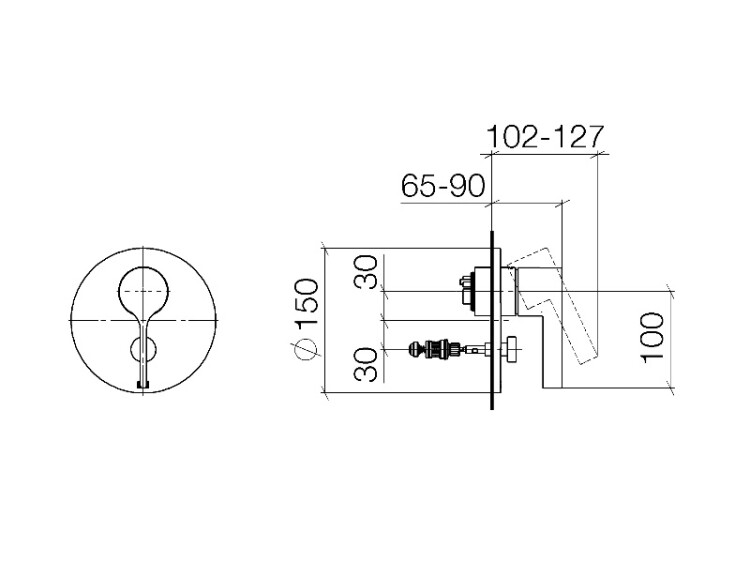 Смеситель для душа, Dornbracht, Vaia, тип открывания воды-однорычажный, тип установки-встраиваемый, внутренняя часть-необходимо заказать, с переключателем, автоматическое переключение, накладная панель диаметр,мм-150, цвет-хром Смеситель для душа, Dornbracht, Vaia, цвет-хром