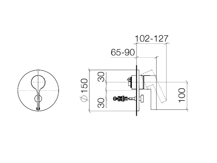 Смеситель для душа, Dornbracht, Vaia, тип открывания воды-однорычажный, тип установки-встраиваемый, внутренняя часть-необходимо заказать, с переключателем, автоматическое переключение, накладная панель диаметр,мм-150, цвет-платина матовая Смеситель для душа, Dornbracht, Vaia, цвет-платина матовая