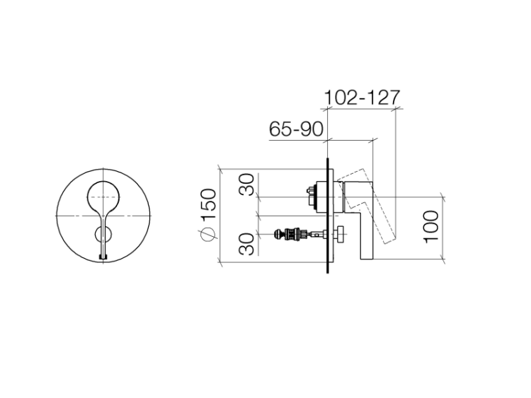 Смеситель для душа, Dornbracht, Vaia, тип открывания воды-однорычажный, тип установки-встраиваемый, внутренняя часть-необходимо заказать, цвет-шампанское, с переключателем, автоматическое переключение, накладная панель диаметр,мм-150 Смеситель для душа, Dornbracht, Vaia, цвет-шампанское