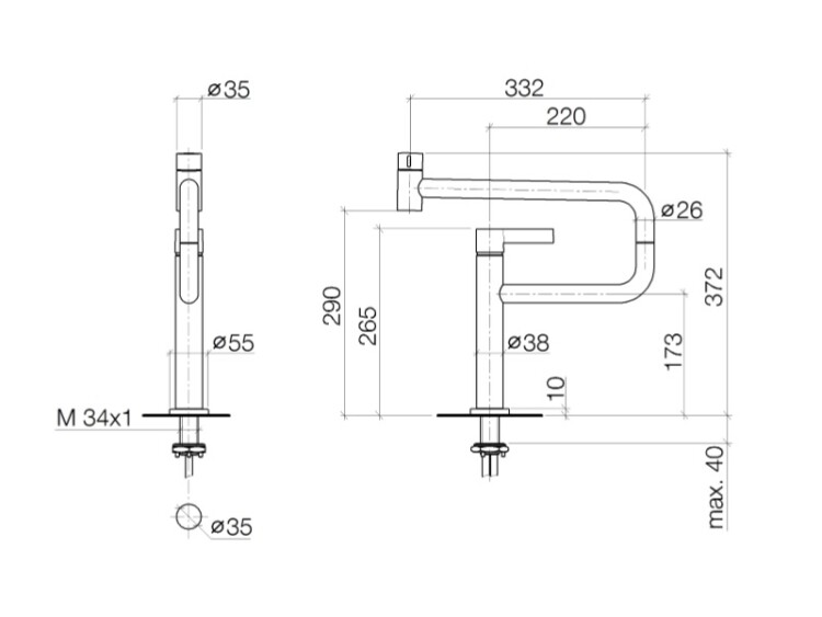 Смеситель для кухни, Dornbracht, Tara Ultra, тип открывания воды-однорычажный, тип регулирования воды-картридж с керамическими шайбами, отверстия для монтажа-1, высота, мм-372, вынос излива, мм-552, тип излива-поворотный 360°, тип подводки-гибкая, цвет-хром Смеситель для кухни, Dornbracht, Tara Ultra, цвет-хром