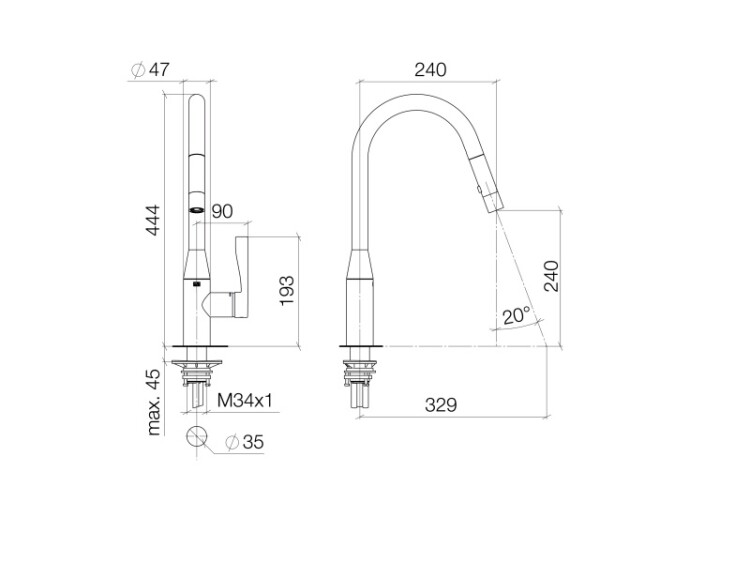 Смеситель для кухни, Dornbracht, Sync, тип открывания воды-однорычажный, тип регулирования воды-картридж с керамическими шайбами, отверстия для монтажа-1, высота, мм-444, вынос излива, мм-240, тип излива-поворотный, дополнительные функции-душ Pull-Down, металлический душевой шланг,мм-1800, опциональный ограничитель, поворотный 150°, ламинарная и душевая струя, тип подводки-гибкая, цвет-Dark Platinum matt Смеситель для кухни, Dornbracht, Sync, цвет-Dark Platinum matt