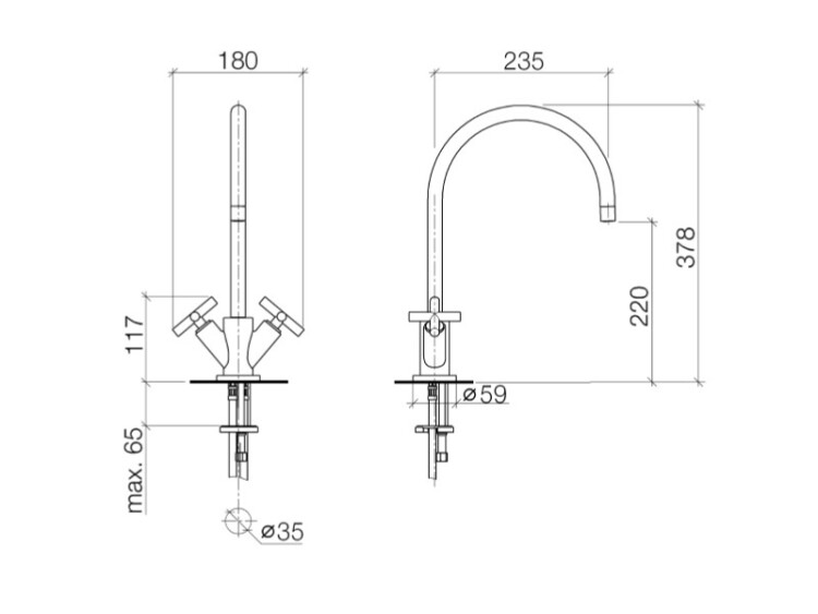 Смеситель для кухни, Dornbracht, Tara, тип открывания воды-двухвентильный, тип регулирования воды-керамический картридж, отверстия для монтажа-1, высота, мм-378, вынос излива, мм-235, тип излива-поворотный 360°, тип подводки-гибкая, цвет-хром Смеситель для кухни, Dornbracht, Tara, цвет-хром