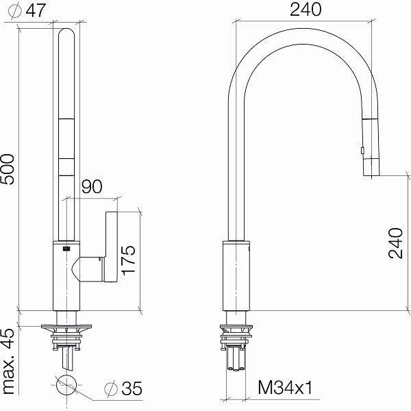 Смеситель для кухни, Dornbracht, Tara Ultra, тип открывания воды-однорычажный, тип регулирования воды-керамический картридж, отверстия для монтажа-1, высота, мм-500, вынос излива, мм-240, тип излива-поворотный, цвет-хром Смеситель для кухни, Dornbracht, Tara Ultra, цвет-хром