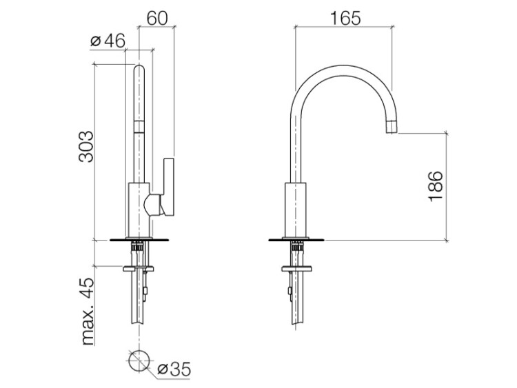 Смеситель для кухни, Dornbracht, Tara Ultra, тип открывания воды-однорычажный, тип регулирования воды-картридж с керамическими шайбами, отверстия для монтажа-1, высота, мм-303, вынос излива, мм-165, тип излива-поворотный 360°, тип подводки-гибкая, цвет-платина матовая, ламинарная струя Смеситель для кухни, Dornbracht, Tara Ultra, цвет-платина матовая