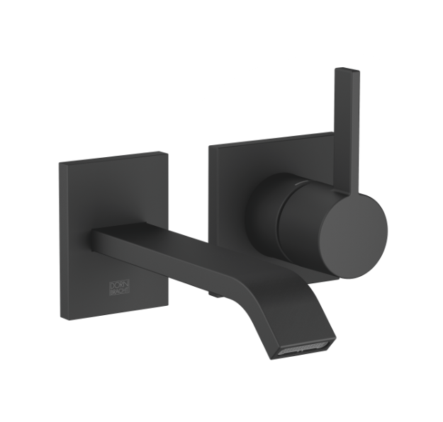 Смеситель для раковины, Dornbracht, Imo, тип открывания воды-рычажный, монтаж-вертикальный встраиваемый (настенный), отверстия для монтажа-2, вынос излива, мм-170, тип излива-неподвижный, внутренняя часть-необходимо заказать, цвет-черный матовый Смеситель для раковины, Dornbracht, Imo, цвет-черный матовый