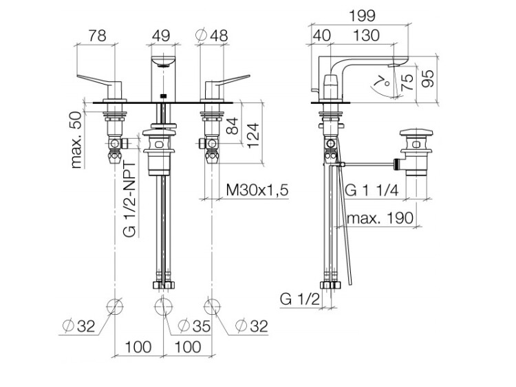 Смеситель для раковины, Dornbracht, Lissé, тип открывания воды-двухрычажный, отверстия для монтажа-3, высота, мм-95, вынос излива, мм-130, тип излива-неподвижный, донный клапан-есть, цвет-хром Смеситель для раковины, Dornbracht, Lissé, цвет-хром