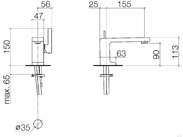 Смеситель для раковины, Dornbracht, Lulu, тип открывания воды-однорычажный, отверстия для монтажа-1, высота, мм-113, вынос излива, мм-155, тип излива-неподвижный, цвет-хром Смеситель для раковины, Dornbracht, Lulu, цвет-хром