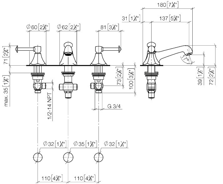 Смеситель для раковины, Dornbracht, Madison, тип открывания воды-вентильный, тип регулирования воды-керамическая кран-букса, монтаж-на раковину/столешницу, отверстия для монтажа-3, высота, мм-72, вынос излива, мм-135, тип излива-неподвижный, донный клапан-есть, тип подводки-гибкая, стандарт подвода воды-1/2", вставки для ручек-необходимо заказать, цвет-платина темная сатинированная (Dark Platinum Satin) Смеситель для раковины, Dornbracht, Madison, цвет-платина темная сатинированная (Dark Platinum Satin)