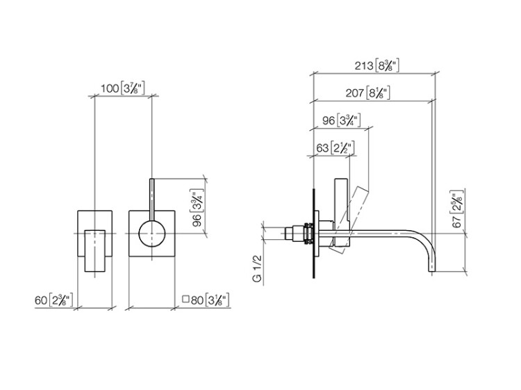 Смеситель для раковины, Dornbracht, MEM, тип открывания воды-однорычажный, тип регулирования воды-керамический картридж, монтаж-настенный встраиваемый, отверстия для монтажа-2, высота, мм-80, вынос излива, мм-207, тип излива-неподвижный, внутренняя часть-необходимо заказать, цвет-хром Смеситель для раковины, Dornbracht, MEM, цвет-хром