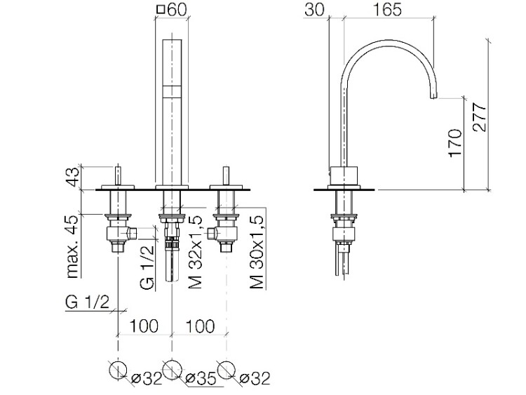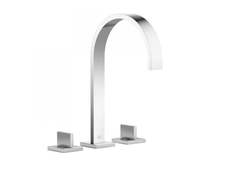 Смеситель для раковины, Dornbracht, MEM, тип открывания воды-двухвентильный, отверстия для монтажа-3, высота, мм-277, вынос излива, мм-165, тип излива-неподвижный, донный клапан-есть, тип подводки-гибкая, цвет-хром, прямоугольная обогащенная воздухом струя Смеситель для раковины, Dornbracht, MEM, цвет-хром