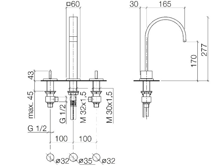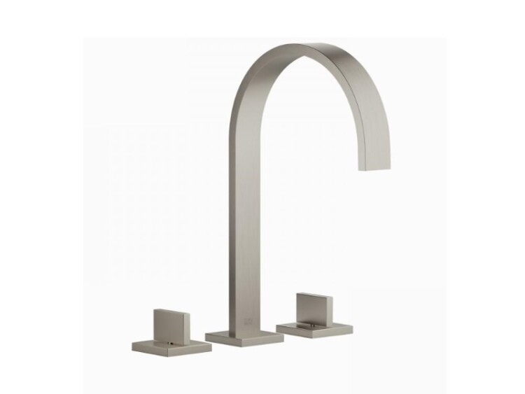Смеситель для раковины, Dornbracht, MEM, тип открывания воды-двухвентильный, отверстия для монтажа-3, высота, мм-277, вынос излива, мм-165, тип излива-неподвижный, донный клапан-есть, тип подводки-гибкая, цвет-платина матовая, прямоугольная обогащенная воздухом струя Смеситель для раковины, Dornbracht, MEM, цвет-платина матовая