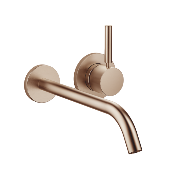 Смеситель для раковины, Dornbracht, Meta, тип открывания воды-однорычажный, тип регулирования воды-керамический картридж, монтаж-настенный встраиваемый, отверстия для монтажа-2, вынос излива, мм-250, тип излива-неподвижный, внутренняя часть-необходимо заказать, цвет-бронза сатинированная Смеситель для раковины, Dornbracht, Meta, цвет-бронза сатинированная