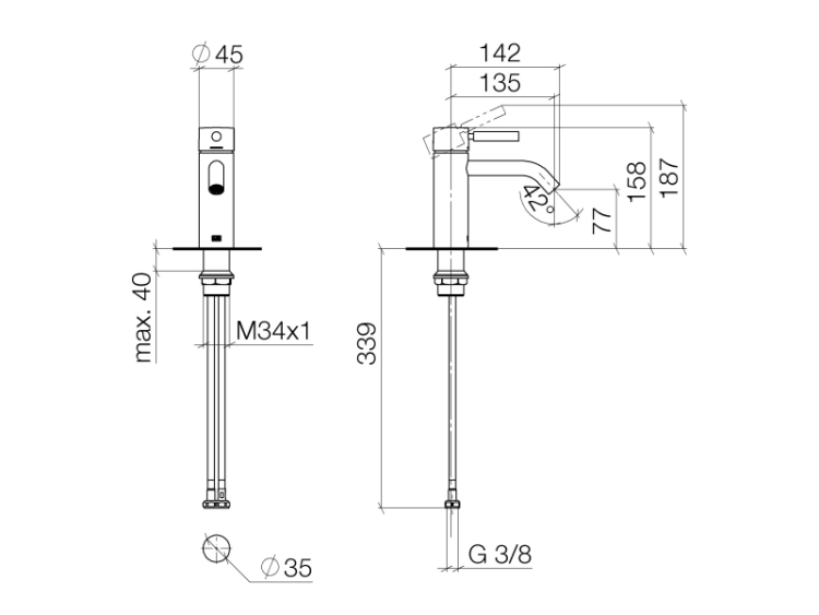 Смеситель для раковины, Dornbracht, Meta, тип открывания воды-однорычажный, отверстия для монтажа-1, высота, мм-158, вынос излива, мм-135, тип излива-неподвижный, цвет-черный матовый Смеситель для раковины, Dornbracht, Meta, цвет-черный матовый