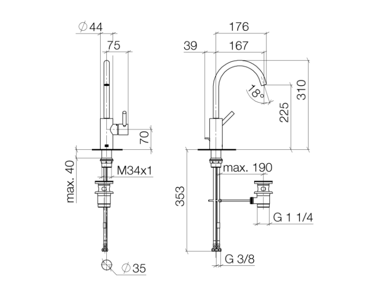 Смеситель для раковины, Dornbracht, Meta, тип открывания воды-однорычажный, отверстия для монтажа-1, высота, мм-310, вынос излива, мм-167, тип излива-поворотный 360°, донный клапан-есть, цвет-хром Смеситель для раковины, Dornbracht, Meta, цвет-хром