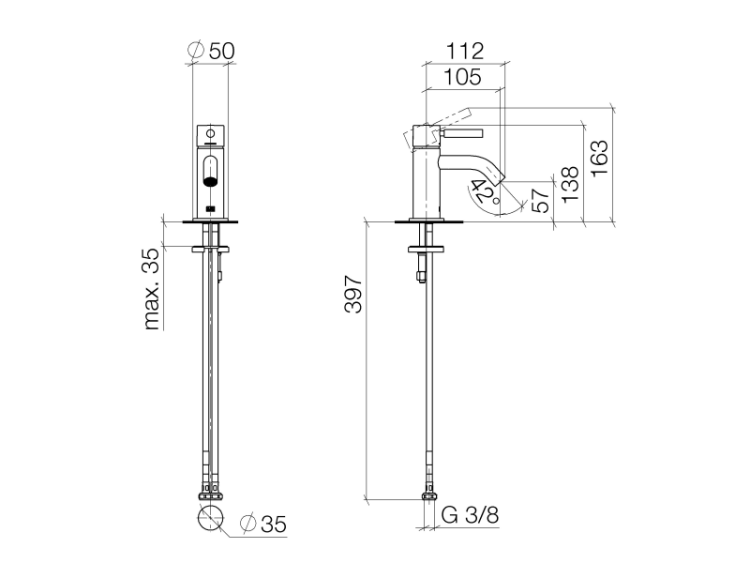 Смеситель для раковины, Dornbracht, Meta, тип открывания воды-однорычажный, отверстия для монтажа-1, высота, мм-138, вынос излива, мм-105, тип излива-неподвижный, цвет-хром Смеситель для раковины, Dornbracht, Meta, цвет-хром