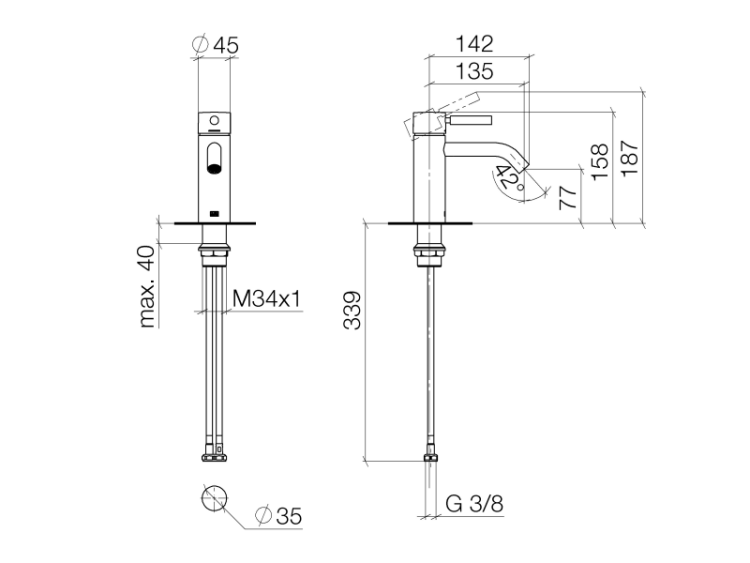 Смеситель для раковины, Dornbracht, Meta, тип открывания воды-однорычажный, отверстия для монтажа-1, высота, мм-158, вынос излива, мм-135, тип излива-неподвижный, цвет-платина матовая Смеситель для раковины, Dornbracht, Meta, цвет-платина матовая