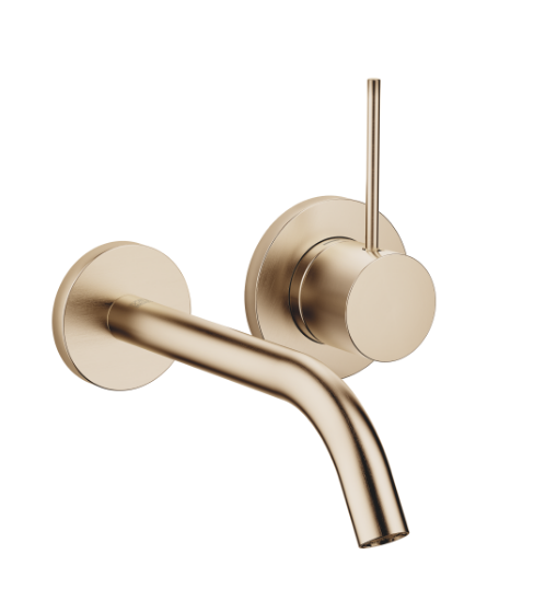Смеситель для раковины, Dornbracht, Meta, тип открывания воды-однорычажный, монтаж-настенный встраиваемый, отверстия для монтажа-2, высота, мм-78, вынос излива, мм-190, тип излива-неподвижный, донный клапан-отсутствует, тип подводки-жесткая, стандарт подвода воды-1/2", внутренняя часть-необходимо заказать, цвет-Шампанское сатинированное (золото 22кт) Смеситель для раковины, Dornbracht, Meta, цвет-Шампанское сатинированное (золото 22кт)