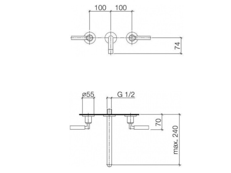 Смеситель для раковины, Dornbracht, Tara, тип открывания воды-двухрычажный, тип регулирования воды-керамический картридж, тип установки-встраиваемый в стену, отверстия для монтажа-3, вынос излива, мм-240, тип излива-неподвижный, стандарт подвода воды-1/2", внутренняя часть-необходимо заказать, цвет-черный матовый Смеситель для раковины, Dornbracht, Tara, цвет-черный матовый