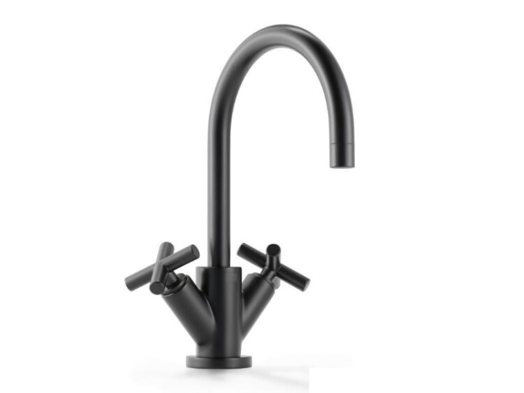 Смеситель для раковины, Dornbracht, Tara, тип открывания воды-двухвентильный, тип регулирования воды-керамический картридж, отверстия для монтажа-1, высота, мм-235, вынос излива, мм-100, тип излива-поворотный 360°, донный клапан-есть, тип подводки-гибкая, стандарт подвода воды-1/2", цвет-черный матовый Смеситель для раковины, Dornbracht, Tara, цвет-черный матовый