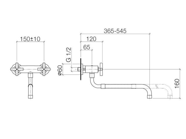 Смеситель для раковины, Dornbracht, Tara, тип открывания воды-двухвентильный, тип регулирования воды-керамический картридж, тип установки-настенный, отверстия для монтажа-2, вынос излива, мм-365-545, тип излива-поворотный, стандарт подвода воды-1/2", цвет-хром Смеситель для раковины, Dornbracht, Tara, цвет-хром