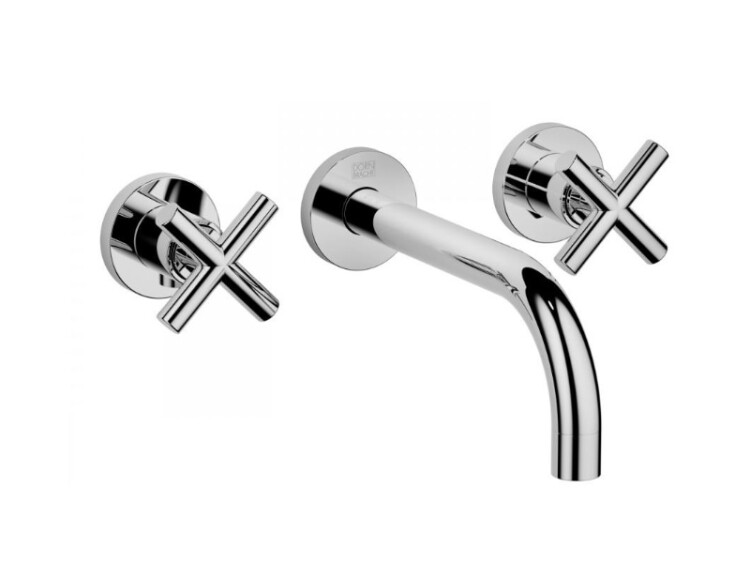 Смеситель для раковины, Dornbracht, Tara, тип открывания воды-двухвентильный, тип регулирования воды-керамический картридж, тип установки-встраиваемый в стену, отверстия для монтажа-3, вынос излива, мм-190, тип излива-неподвижный, стандарт подвода воды-1/2", внутренняя часть-необходимо заказать, цвет-хром Смеситель для раковины, Dornbracht, Tara, цвет-хром