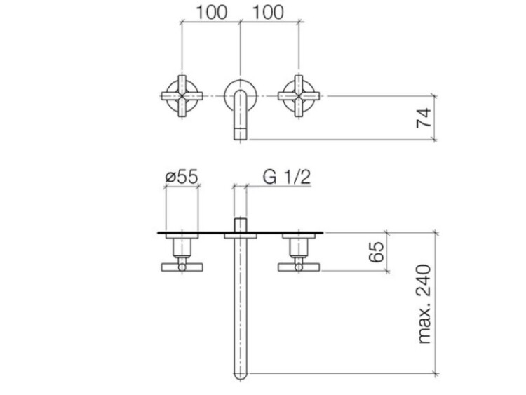 Смеситель для раковины, Dornbracht, Tara, тип открывания воды-двухвентильный, тип регулирования воды-керамический картридж, тип установки-встраиваемый в стену, отверстия для монтажа-3, вынос излива, мм-240, тип излива-неподвижный, стандарт подвода воды-1/2", внутренняя часть-необходимо заказать, цвет-хром Смеситель для раковины, Dornbracht, Tara, цвет-хром