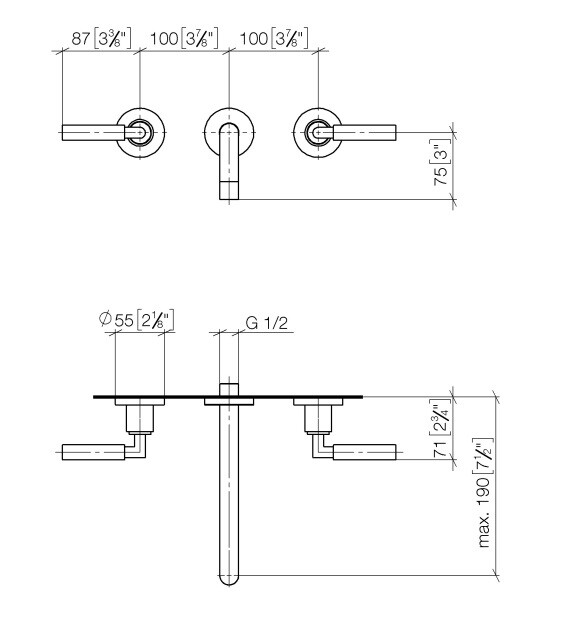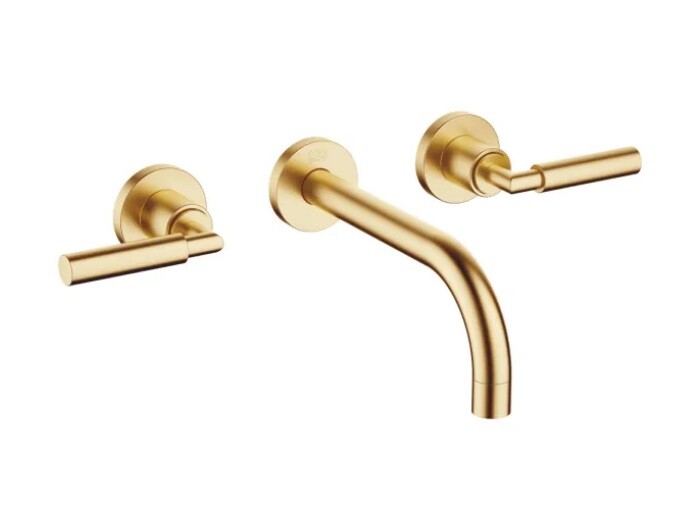 Смеситель для раковины, Dornbracht, Tara, тип открывания воды-двухвентильный, тип регулирования воды-керамическая кран-букса, монтаж-настенный встраиваемый, отверстия для монтажа-3, вынос излива, мм-190, тип излива-неподвижный, донный клапан-отсутствует, внутренняя часть-необходимо заказать, цвет-латунь сатинированная Смеситель для раковины, Dornbracht, Tara, цвет-латунь сатинированная