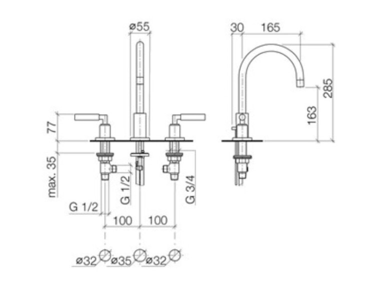 Смеситель для раковины, Dornbracht, Tara, тип открывания воды-двухрычажный, тип регулирования воды-керамический картридж, отверстия для монтажа-3, высота, мм-285, вынос излива, мм-165, тип излива-поворотный, донный клапан-есть, стандарт подвода воды-1/2", цвет-платина матовая Смеситель для раковины, Dornbracht, Tara, цвет-платина матовая