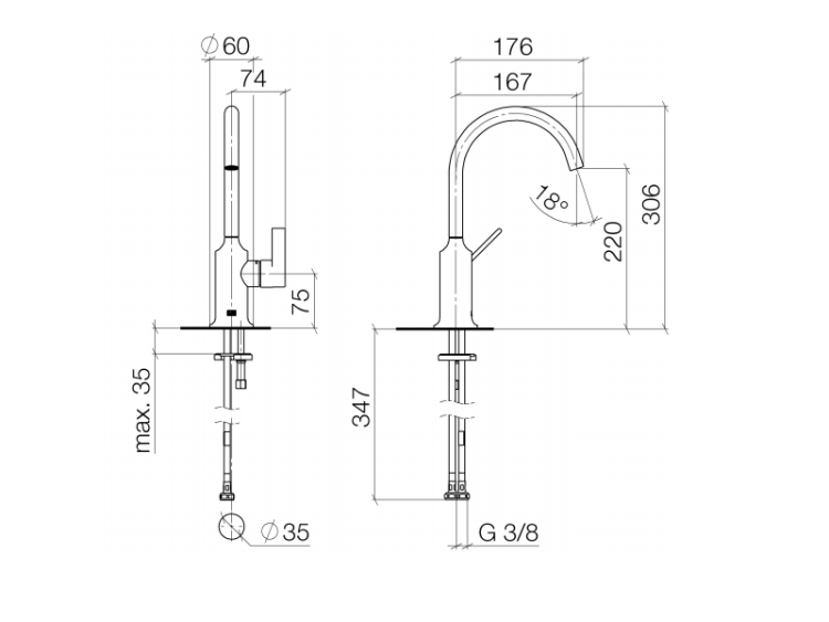 Смеситель для раковины, Dornbracht, Vaia, тип открывания воды-однорычажный, отверстия для монтажа-1, высота, мм-306, вынос излива, мм-167, тип излива-поворотный 360°, цвет-Dark Platinum matt, без сливного гарнитура Смеситель для раковины, Dornbracht, Vaia, цвет-Dark Platinum matt