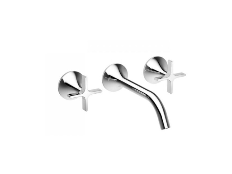 Смеситель для раковины, Dornbracht, Vaia, тип открывания воды-двухвентильный, тип установки-настенный, отверстия для монтажа-3, вынос излива, мм-190, тип излива-неподвижный, круглая обогащенная воздухом струя, стандарт подвода воды-1/2", внутренняя часть-необходимо заказать, цвет-хром, круглая обогащенная воздухом струя Смеситель для раковины, Dornbracht, Vaia, цвет-хром