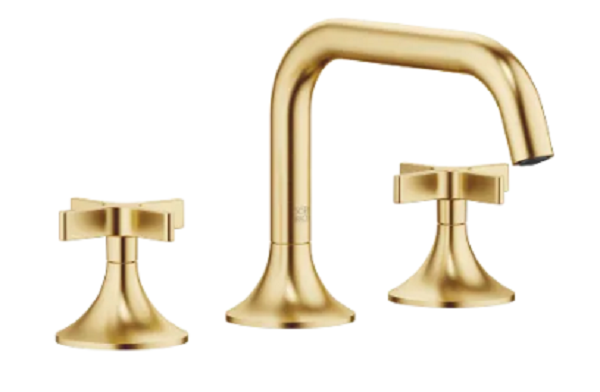 Смеситель для раковины, Dornbracht, Vaia, тип открывания воды-вентильный, тип регулирования воды-керамическая кран-букса, монтаж-на раковину/столешницу, отверстия для монтажа-3, высота, мм-144, вынос излива, мм-165, тип излива-поворотный 360°, донный клапан-есть, для умывальника с переливным устройством, цвет-латунь сатинированная (золото 23кт) Смеситель для раковины, Dornbracht, Vaia, цвет-латунь сатинированная (золото 23кт)