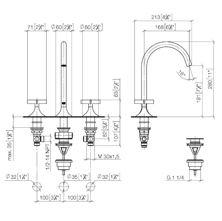 Смеситель для раковины, Dornbracht, Vaia, тип открывания воды-вентильный, тип регулирования воды-керамическая кран-букса, монтаж-на раковину/столешницу, отверстия для монтажа-3, высота, мм-280, вынос излива, мм-168, тип излива-поворотный, донный клапан-есть, тип подводки-гибкая, стандарт подвода воды-1/2", цвет-латунь темная матовая (Dark Brass Brushed) Смеситель для раковины, Dornbracht, Vaia, цвет-латунь темная матовая (Dark Brass Brushed)