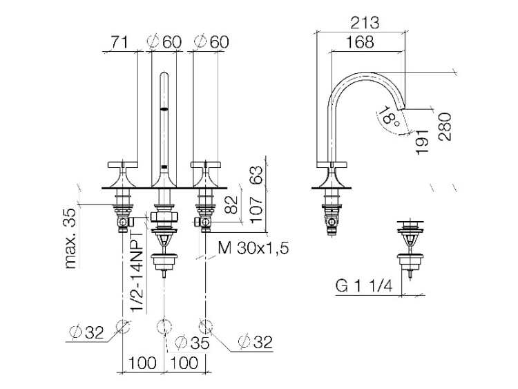 Смеситель для раковины, Dornbracht, Vaia, тип открывания воды-двухвентильный, отверстия для монтажа-3, высота, мм-280, вынос излива, мм-168, тип излива-поворотный 360°, круглая обогащенная воздухом струя, донный клапан-есть, цвет-платина матовая Смеситель для раковины, Dornbracht, Vaia, цвет-платина матовая
