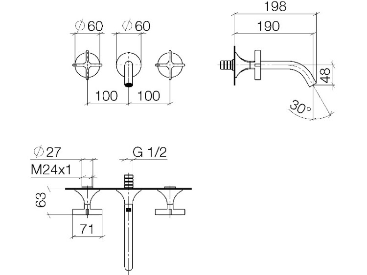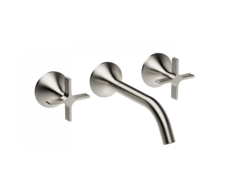 Смеситель для раковины, Dornbracht, Vaia, тип открывания воды-двухвентильный, тип установки-настенный, отверстия для монтажа-3, вынос излива, мм-190, тип излива-неподвижный, круглая обогащенная воздухом струя, стандарт подвода воды-1/2", внутренняя часть-необходимо заказать, цвет-платина матовая, круглая обогащенная воздухом струя Смеситель для раковины, Dornbracht, Vaia, цвет-платина матовая