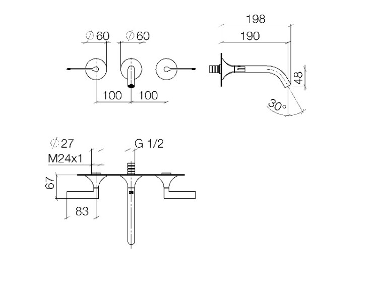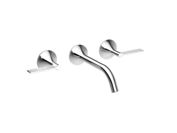 Смеситель для раковины, Dornbracht, Vaia, тип открывания воды-двухвентильный, тип установки-настенный, отверстия для монтажа-3, вынос излива, мм-190, тип излива-неподвижный, внутренняя часть-необходимо заказать, цвет-платина матовая Смеситель для раковины, Dornbracht, Vaia, цвет-платина матовая